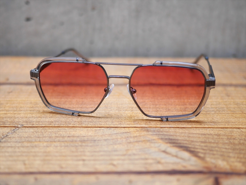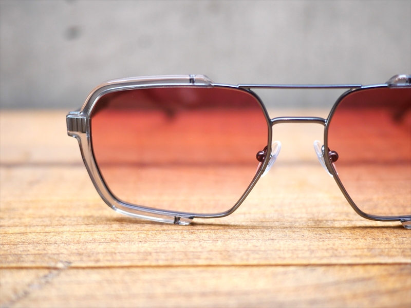通常であれば、ブロー部分やレンズ周りのインナーリムにプラスチックを組み込みますが、あえての両サイドに配した、我々の常識の「斜め上」をいく斬新なデザイン!