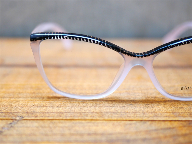 今回入荷した「A03502M」は、女性らしい美しさを引き立てるフォックス(キャットアイ)シェイプをアラン ミクリならではのカラーリングで彩った、上品かつ優美な佇まいが魅力です。