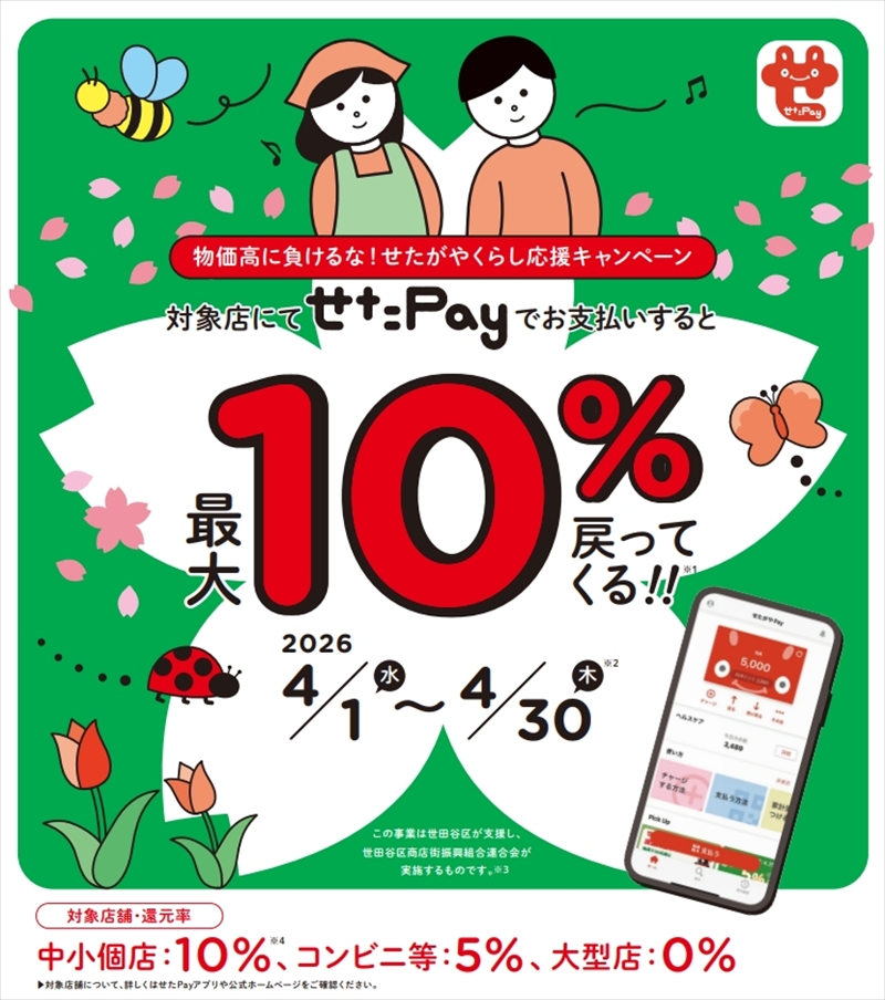4/1~4/30の「せたがやPay」10%ポイント還元キャンペーンは成城店・二子玉川店にてご利用いただけます。
